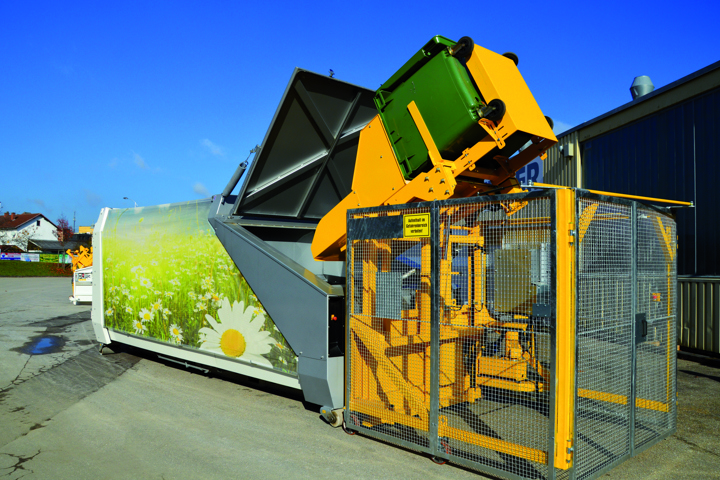 Die stationäre oder mobile Kippvorrichtung für größere Mengen an Restmüll