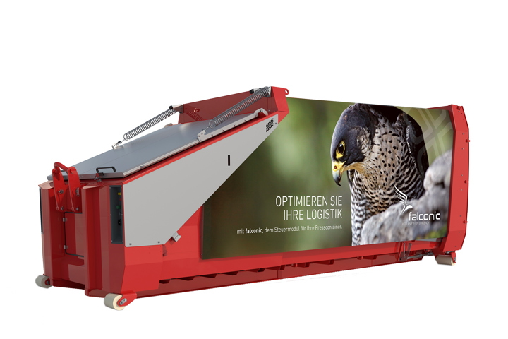 Alle PÖTTINGER Presscontainer sind serienmäßig mit Phasenwender sowie Anschluss für eine Fernbedienung ausgestattet und ermöglichen damit eine flexible und sichere Inbetriebnahme. Das optionale Komfortpaket erhöht die Bedienfreundlichkeit und Effizienz im täglichen Einsatz: Automatisches Vollmeldesystem per SMS für eine bedarfsgerechte und wirtschaftliche Abholung, Elektrischer Deckelöffner für komfortables Handling, Taster für die Kippvorrichtung zur einfachen und sicheren Bedienung.