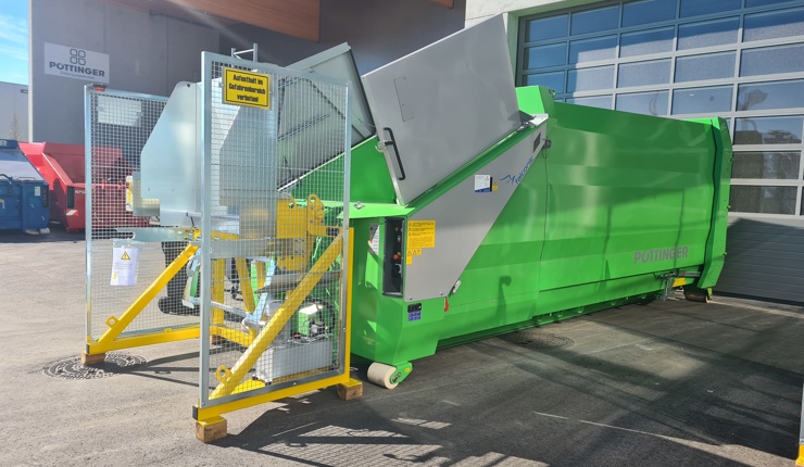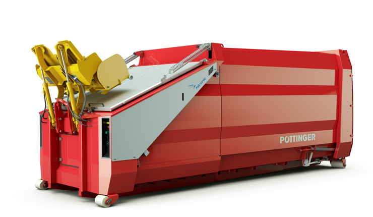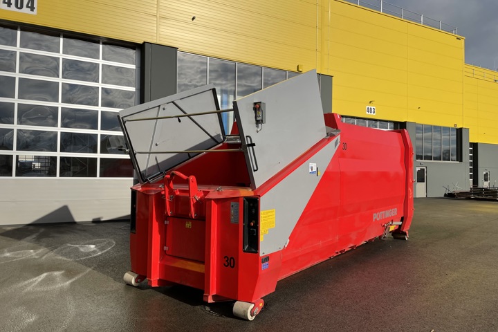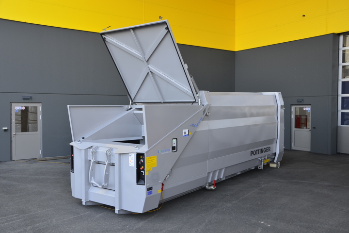 Eine optimierte Pressengeometrie sorgt für eine verbesserte Pressleistung und ermöglicht ein bis zu 20 % höheres Befüllgewicht. Gleichzeitig ist der Container flüssigkeitsdicht und damit auch ideal für nasse Abfälle geeignet. Ein weiteres Plus ist die große Einfüllöffnung, die ein komfortables und effizientes Befüllen ermöglicht. Die hochwertige Lackqualität auf Automobilniveau, der leise Laufbetrieb sowie höchste Bedienersicherheit unterstreichen den Qualitätsanspruch von PÖTTINGER.