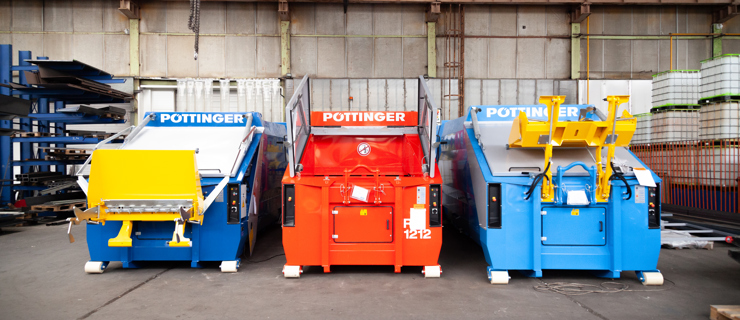 Alle PÖTTINGER Presscontainer sind standardmäßig pulverbeschichtet und in allen RAL-Farben erhältlich. Die lösungsmittelfreie Pulverbeschichtung bietet optimalen Korrosionsschutz, hohe Widerstandsfähigkeit und eine lange Lebensdauer. Nach Reinigung und Sandstrahlen (RA 2½) werden die Bauteile grundiert und mit Deckpulver beschichtet. Eine Mindestlackstärke von 120 µm und die Aushärtung bei ca. 200 °C sorgen für eine besonders robuste, schlag- und abriebfeste Oberfläche.