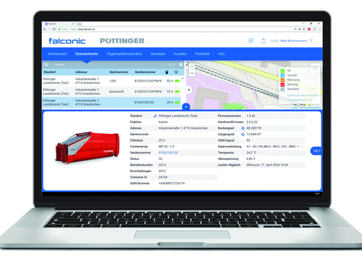 Alle PÖTTINGER Presscontainer sind serienmäßig mit Phasenwender sowie Anschluss für eine Fernbedienung ausgestattet und ermöglichen damit eine flexible und sichere Inbetriebnahme. Das optionale Komfortpaket erhöht die Bedienfreundlichkeit und Effizienz im täglichen Einsatz: Automatisches Vollmeldesystem per SMS für eine bedarfsgerechte und wirtschaftliche Abholung, Elektrischer Deckelöffner für komfortables Handling, Taster für die Kippvorrichtung zur einfachen und sicheren Bedienung.